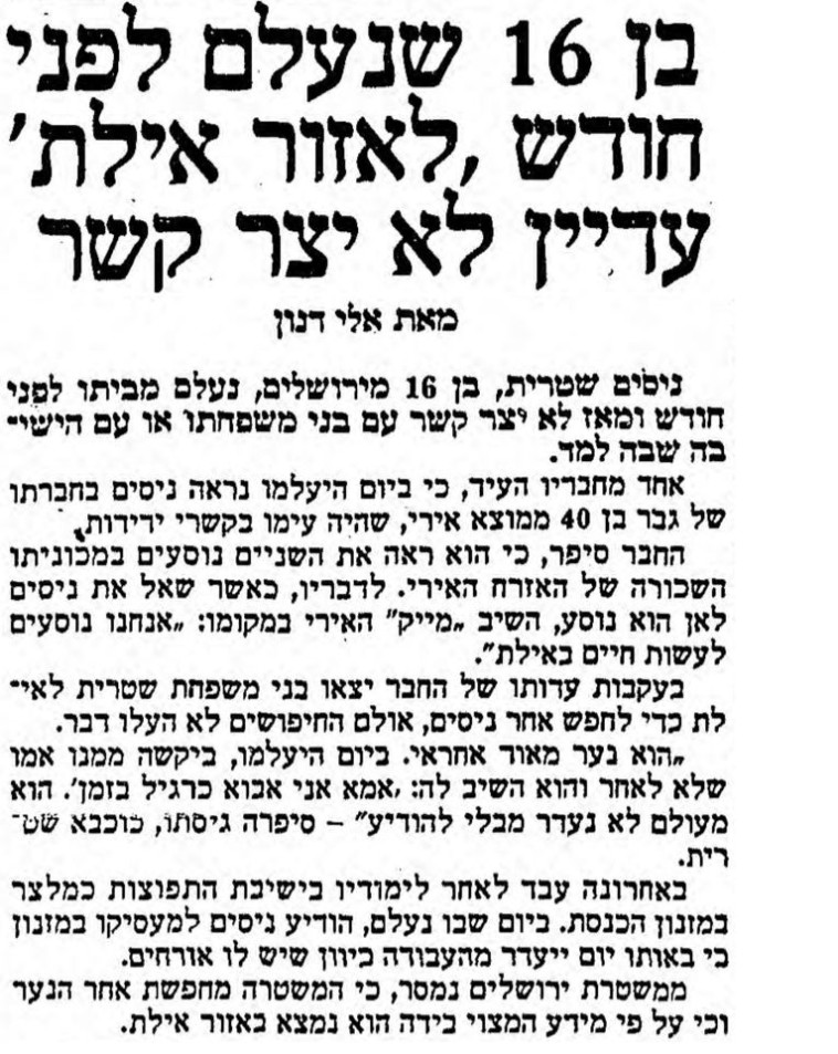 פרשת הנער הנעדר והרצח מ 1990 אחת החשודות הודתה שהייתה נערת פיתוי